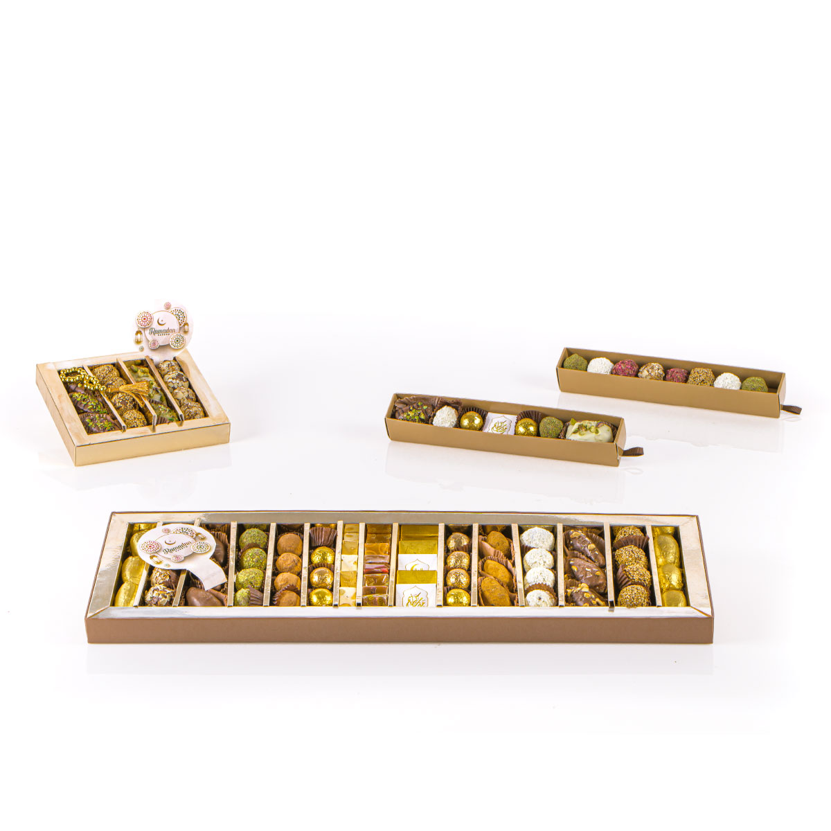 Sublime assortiment de nos dattes enrobées, l’occasion de découvrir une large gamme de saveurs différentes selon les tailles des coffrets.