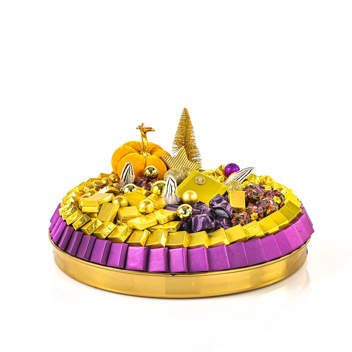 Plateau rond doré avec fond noir métalisé