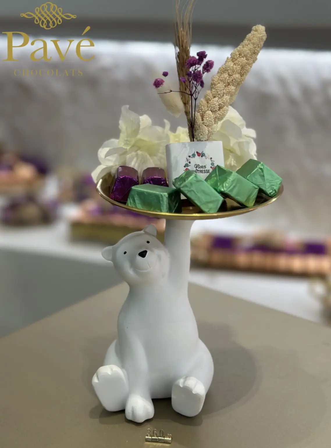 Un adorable ourson en céramique, avec son assiette dorée, parfait pour mettre en valeur vos objets ou encore pour vider vos poches avec une touche originale.